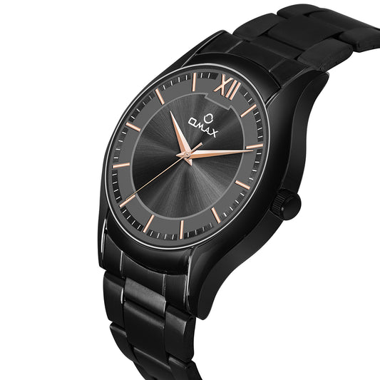 Omax Stainless Steel Black Gun Metal Watch for Men BBGS317