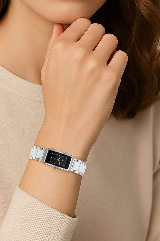 Omax Analog Black Dial Silver Dtainless Steel Strap Womens Watch - LS271