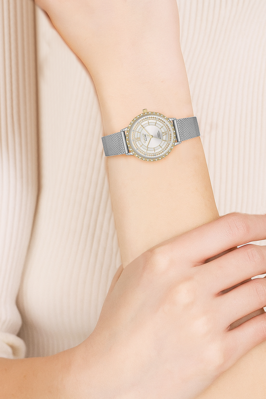 Omax White Dial Gold Case n Index Silver Watch for Women SPM02T66I