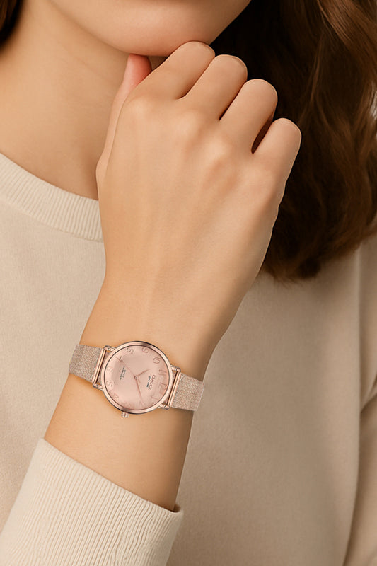 OMAX Women's Analog Rose Gold Dial Watch with Elegant Rose Gold Bracelet Strap - Stylish and Timeless- SPM02R58I