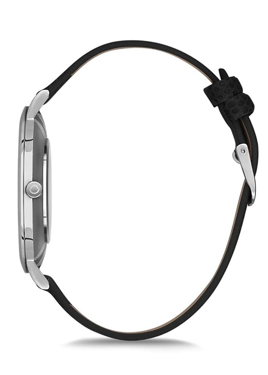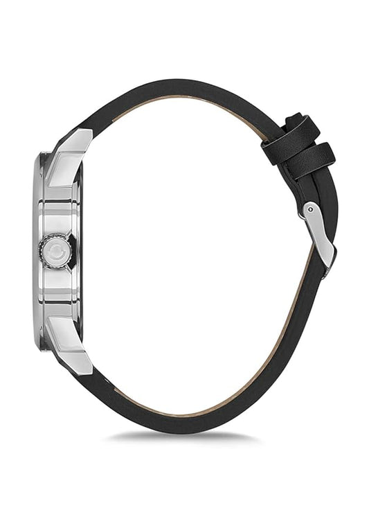 Omax Black Dial Silver Case and Index with Black Leather Watch for Men- GU03P22I
