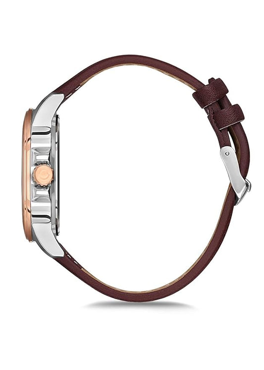 Omax Rose Gold Numerical Index with Genuime Leather Band Watch for Men- VC09R22A