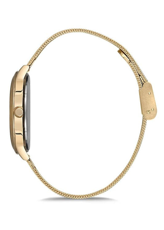 Omax Gold Analog Dial With Golden Mesh Chian Watch for Women-00FMB012Q001