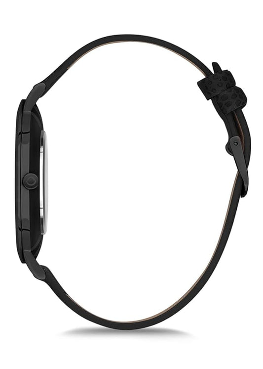 Omax Black Dial ,Case , Genuine Leather Strap LS305