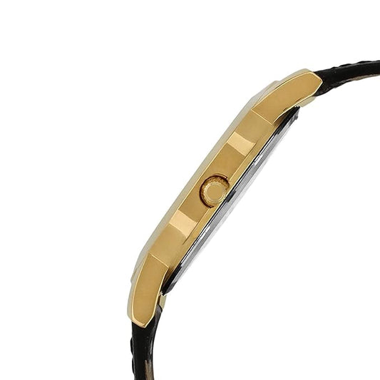 Omax Black Dial Golden Case with genuine Leather Strap Watch for Men BGS314Q002