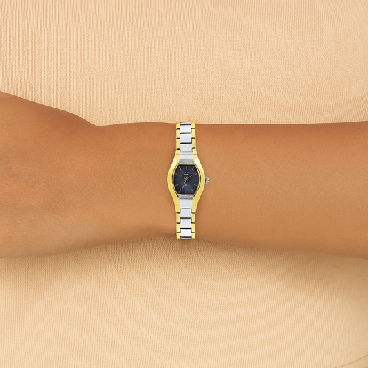Omax analog Black Ovel Dial with Two Tone Stainless Steel bracelet for Women-LS200