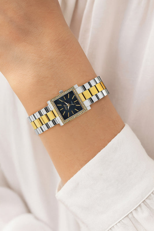 OMAX Black square Analog Dial with Stainless Steel Gold and Silver Strap Watch for Women-LS197