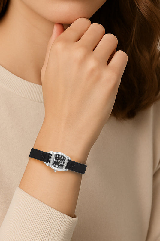 Omax Analog Silver Round Dial Black Leather Strap Women Watch - PM001P62I