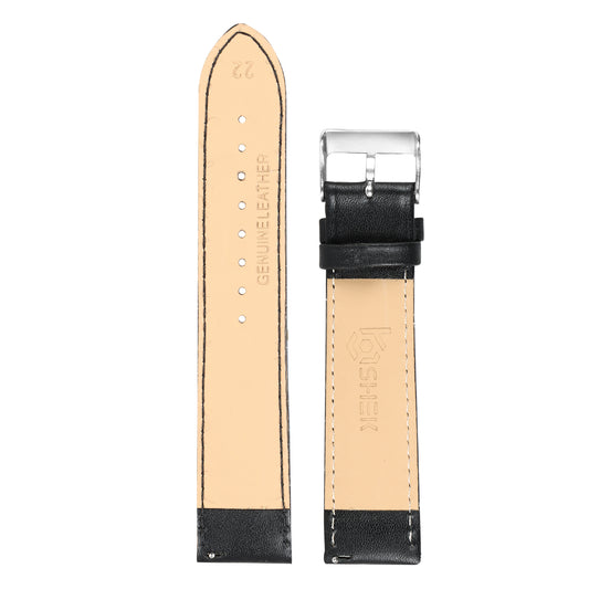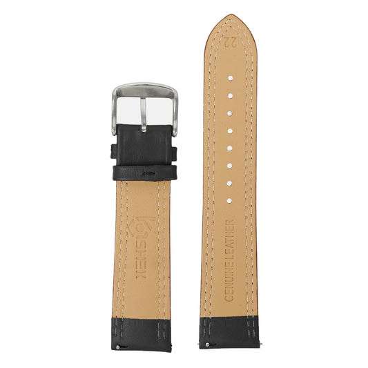 Boshek Black Solid Genuine Leather Full Padded Watch Strap for Quick Release and Self Changeable FS331-BK-22-S