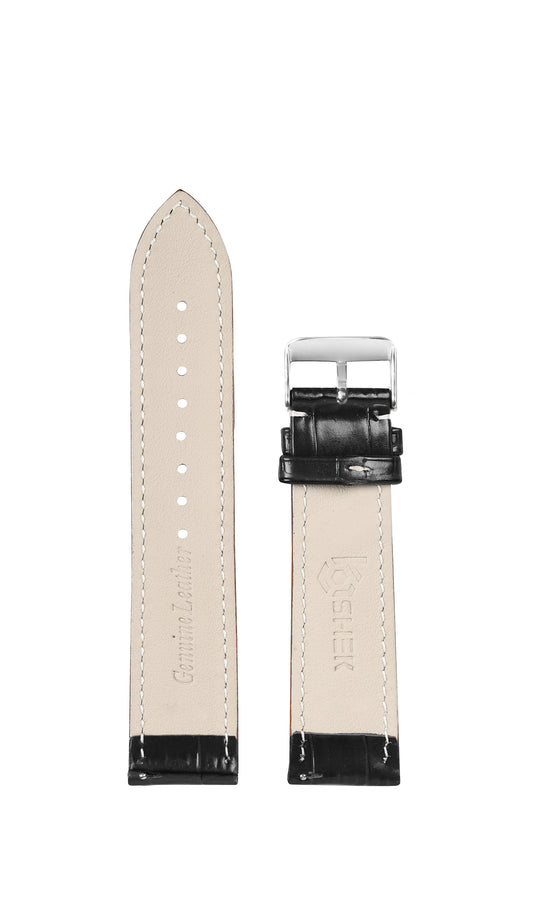 Boshek Black Genuine Leather Croco Design Watch Strap. Silver Buckle Quick Release and Self Changeable FS354-BL-24-S