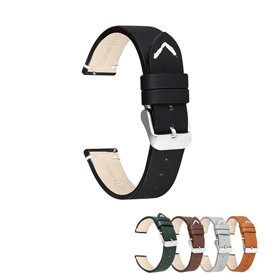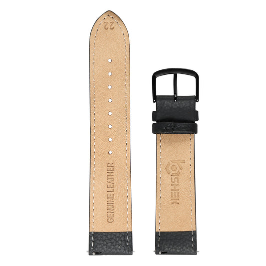 Boshek Black Solid Full Grain Genuine Leather Watch Strap for Quick Release and and Self Changeable FS338