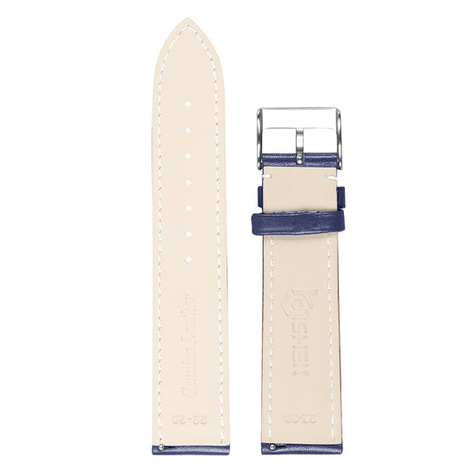 Boshek Blue Color Genuine Leather Silver Buckle Watch Strap for Quick Release and Self Changeable FS319-BL-22-S
