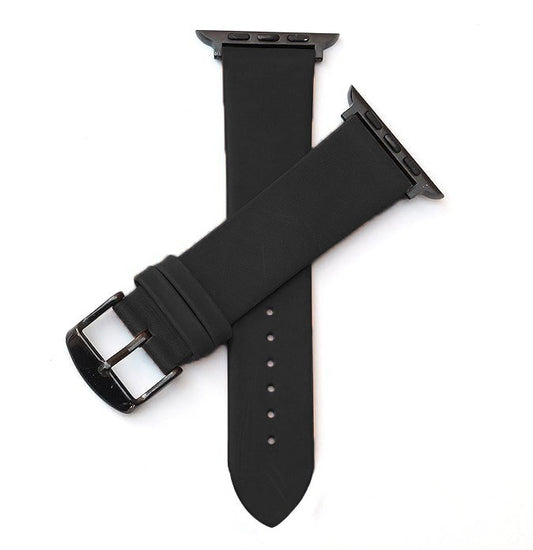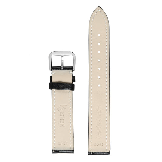 Boshek Black Genuine Leather Watch Strap. Black Stainless Steel Buckle Self Changeable FS308-BK-42-B