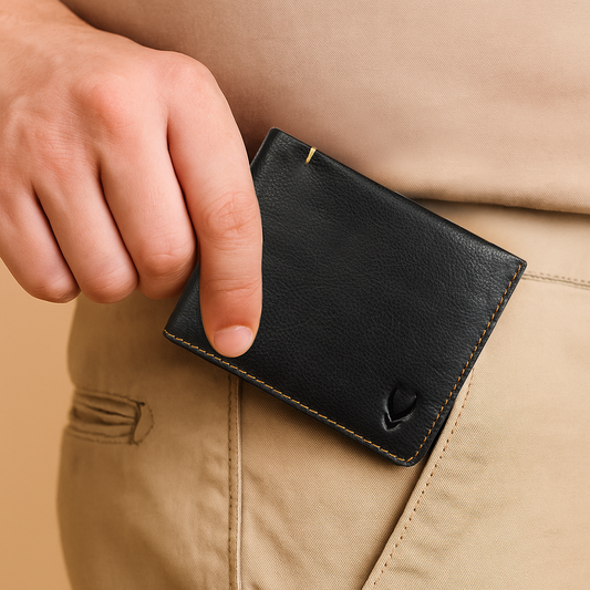 BOSHEK Black Tan Slim Soft Leather Men's Wallet FW244