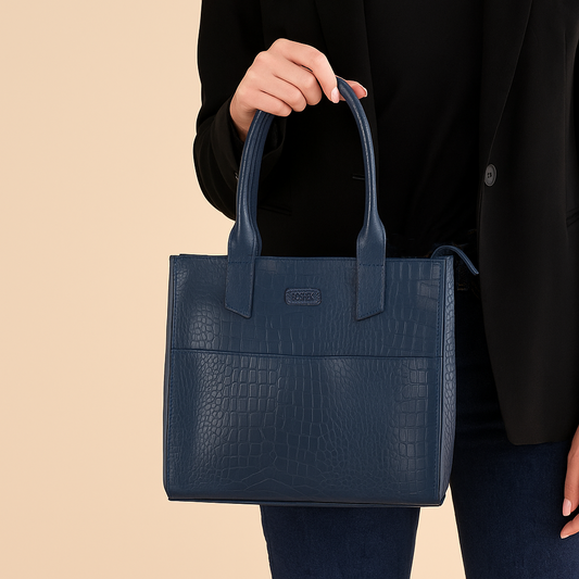 Boshek Blue Genuine Leather Tote Croco Print Handbag for Women FL27
