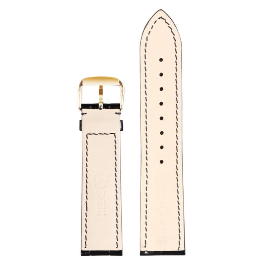 Boshek Black Genuine Leather Croco Design Unisex Watch Strap. Golden Buckle Quick Release and Self Changeable FS313