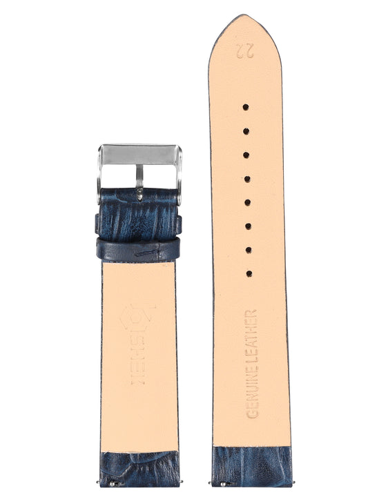 Boshek Blue Genuine Leather Silver Buckle Croco Design Watch Strap for Quick Release and Self Changeable FS351-BL-22-S
