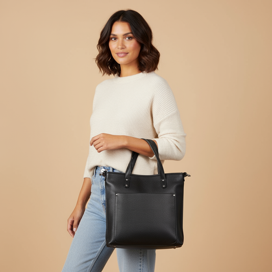 Boshek Black Stylish Genuine Leather Tote Handbag for Women