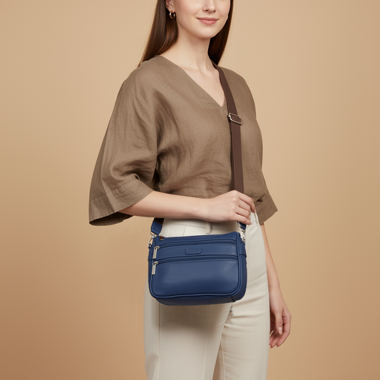 Boshek Blue Color Genuine Leather Mini Sling Cross Body Bag for Women FL65