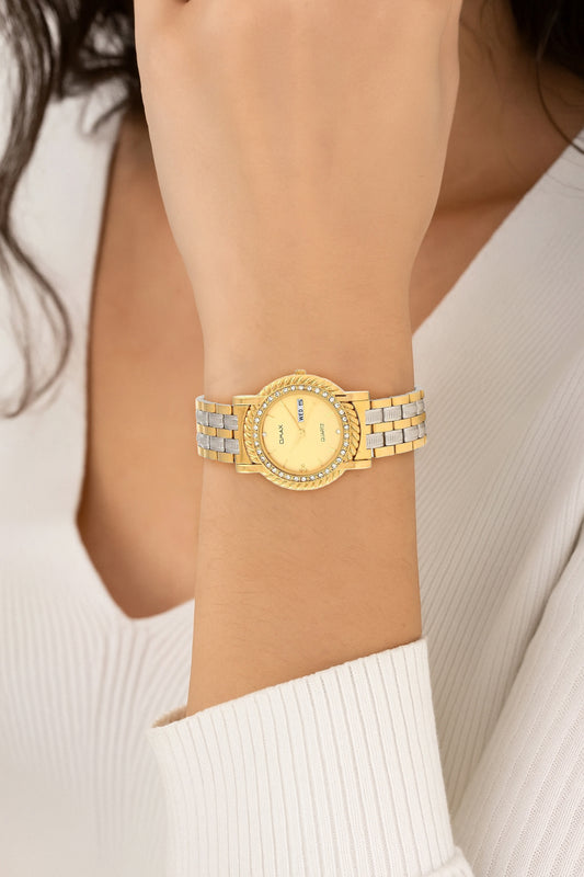 Omax Silver Analog Dial With Golden Mesh Chian Watch for Women-00FMB012Q008