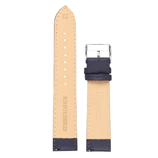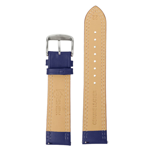 Boshek Blue Genuine Leather, Silver Buckle Watch Strap for Quick Release and Self Changeable FS373-BL-22-S