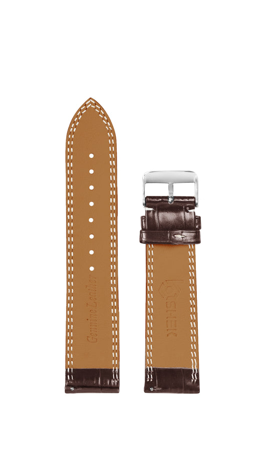 Boshek Brown Genuine Leather Silver Buckle Croco Design Watch Strap for Quick Release and Self Changeable FS321-BR-24-S