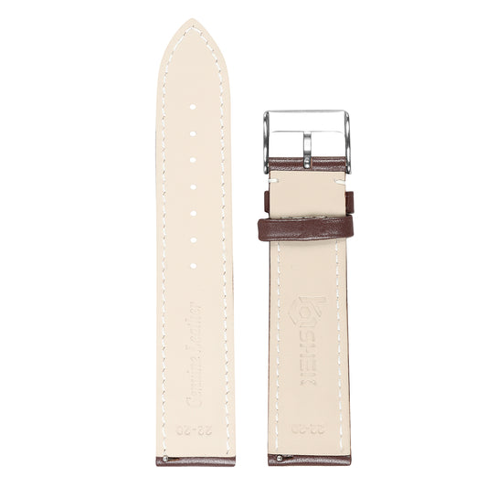 Boshek Brown Color Plain Genuine Leather Watch Strap FS370. Silver buckle Quick Release and Self Changeable 20mm