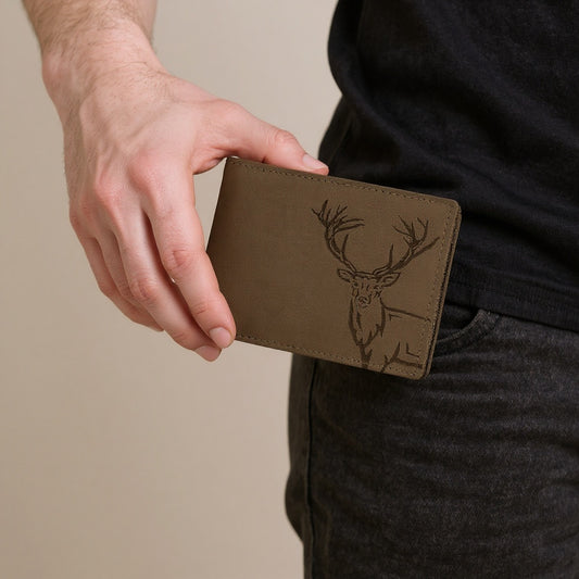 BOSHEK Brown Elk Embossed Design Hunter Leather Wallet FW253