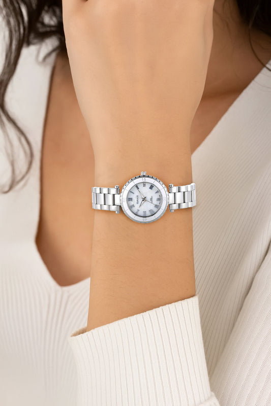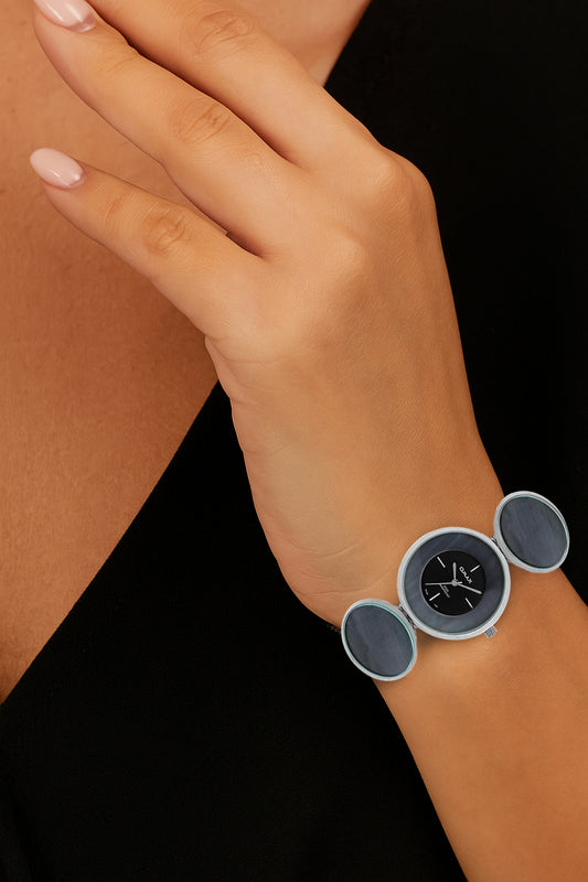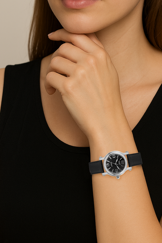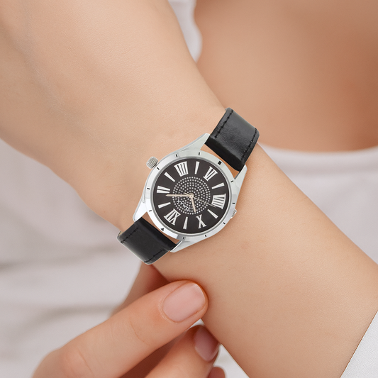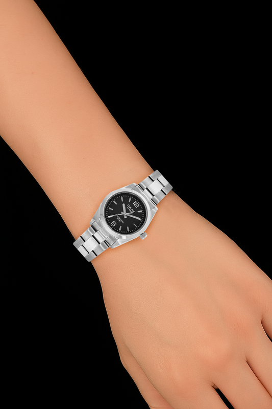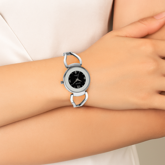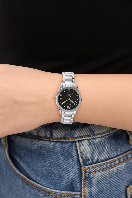 OMAX Women's Black Dial Silver Stainless Steel Strap Watch - Elegant and Timeless-LS185