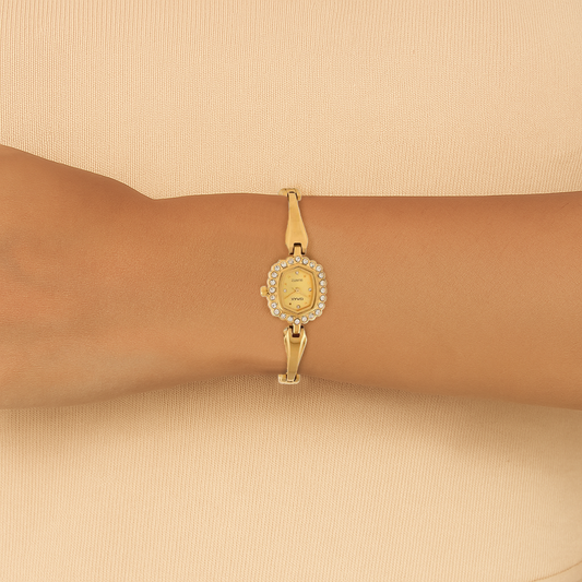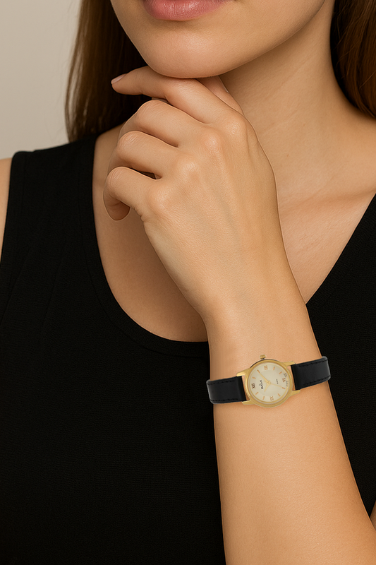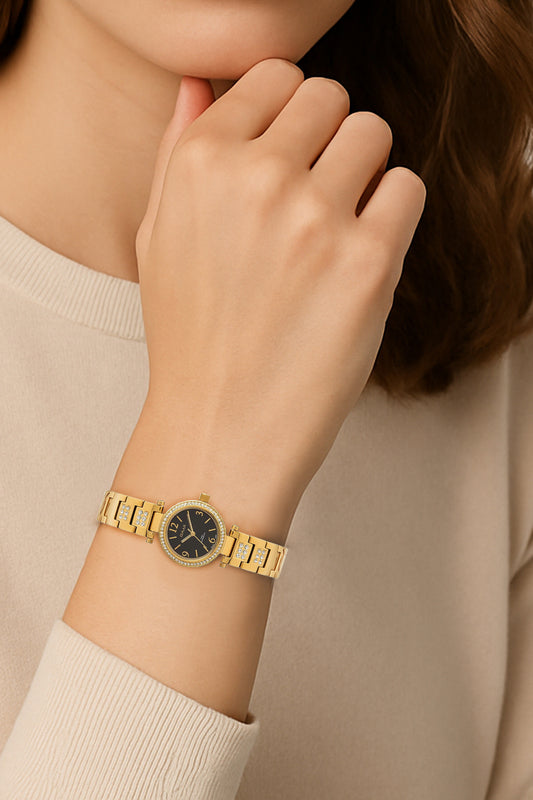 Omax Women's Black Dial Golden Stainless Steel Strap Watch - Elegant and Timeless LS284