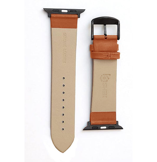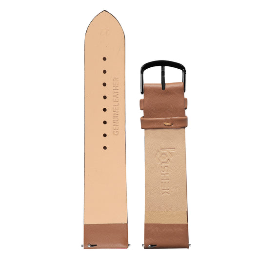 Boshek Tan Genuine Leather Watch Strap. Black Stainless Steel Buckle Self Changeable FS308-TN-42-B