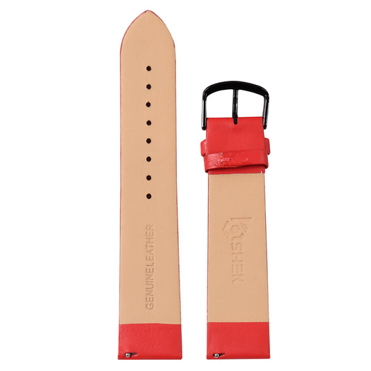 Boshek Solid Red Genuine Leather Black Buckle Watch Strap for Quick Release and Self Changeable FS339