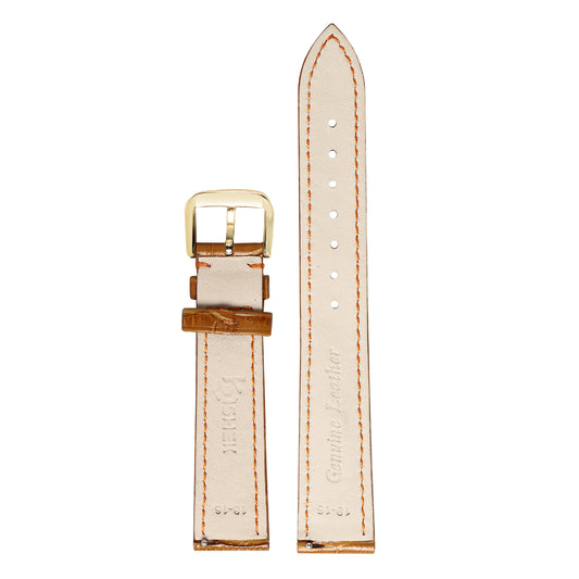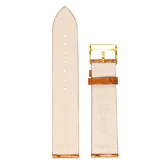 Boshek Tan Genuine Leather Croco Design Watch Strap. Golden Buckle Quick Release and Self Changeable FS354
