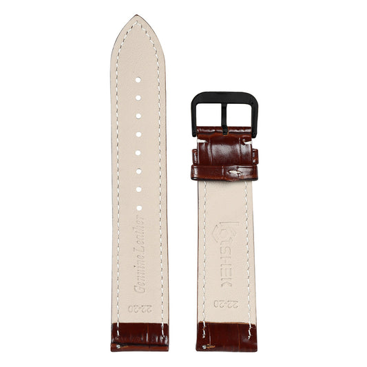 Boshek Tan Genuine Leather Croco Design Watch Strap. Black Buckle Quick Release and Self Changeable FS354