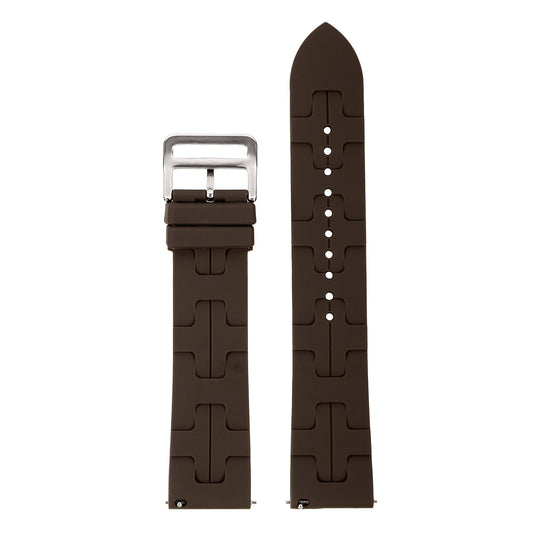 Omax 22 MM Brown Color Ribbed Premium Grade, super flexible and smooth silicon watch strap and band compatible with All smart, digital and analog watches FSS03-BR-22-S