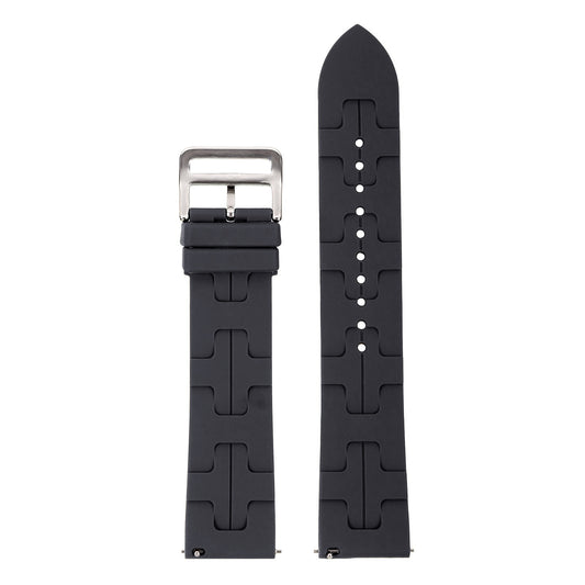 Omax 22 MM Black Ribbed Premium Grade, super flexible, Textured and smooth silicon watch strap and band compatible with All smart, digital and analog watches FSS08-BK-22-BK