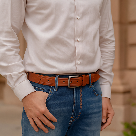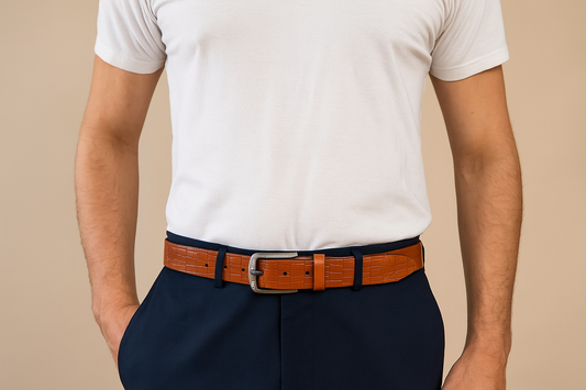 Omax Tan Genuine Leather Premium Unique Design Belts for men BLTBTL027