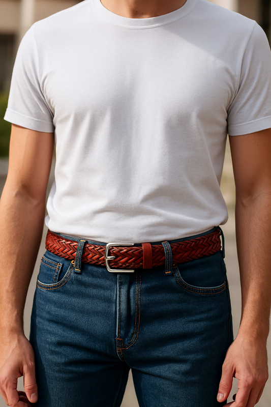 Omax Tan Genuine Leather Premium Braided Belts for men BLTBTL025