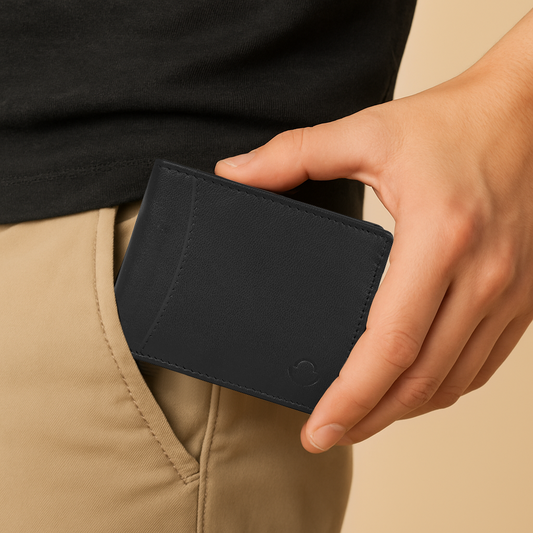 BOSHEK Black Tan Slim Soft Leather Men's Wallet FW244