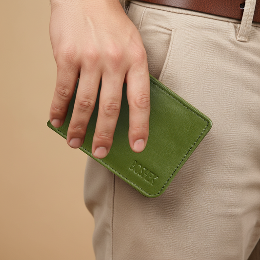 BOSHEK Green Leather Wallet Slim and Feather weight FW22