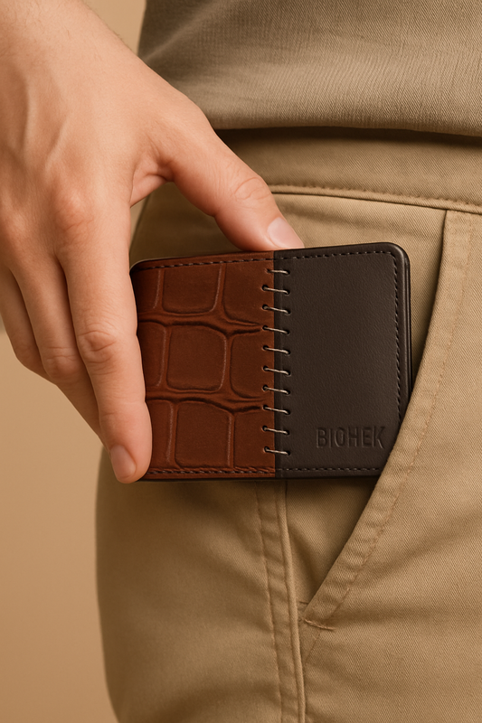 BOSHEK Dark Brown Hand Stitched Croco Pattern Leather Men's Wallet FW243