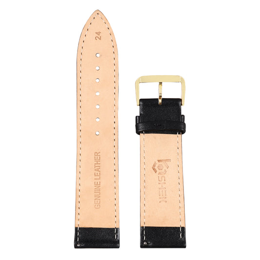 Boshek Solid Black Genuine Leather Golden Buckle Watch Strap for Quick Release and Self Changeable FS318