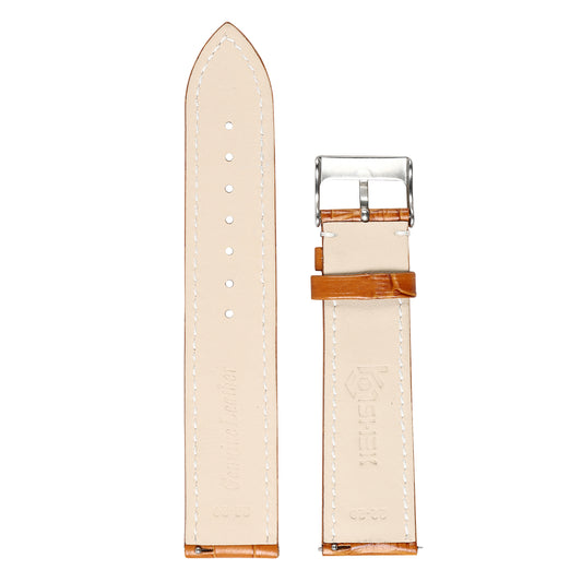 Boshek Tan Genuine Leather Croco Design Watch Strap. Silver Buckle Quick Release and Self Changeable FS354-TA-22-S