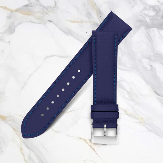 Boshek Royal Blue Color Plain Contrast Stitched Semi Padded Genuine Leather Watch Strap FS323. Silver buckle Quick Release and Self Changeable - 22mm
