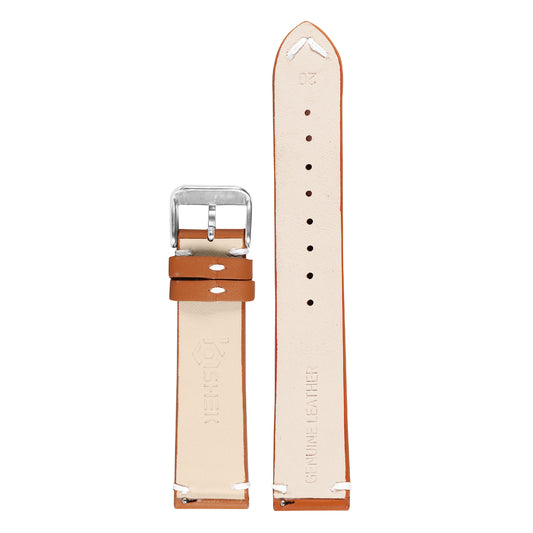 Boshek 24 MM Tan Genuine Leather Watch Strap. Silver Buckle Quick Release and Self Changeable FS405-TA-24-S