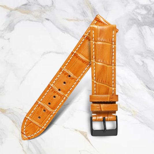 Boshek Tan Genuine Leather Croco Design Watch Strap. Black Buckle Quick Release and Self Changeable FS354