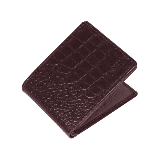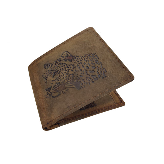 OMAX Brown Leopard Embossed Design Genuine Leather Mens Wallet with Free Rakhi for Brother RBFW253