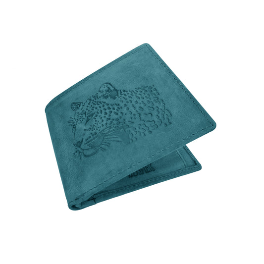 OMAX Aqua Blue Leopard Embossed Design Genuine Leather Mens Wallet with Free Rakhi for Brother RBFW253