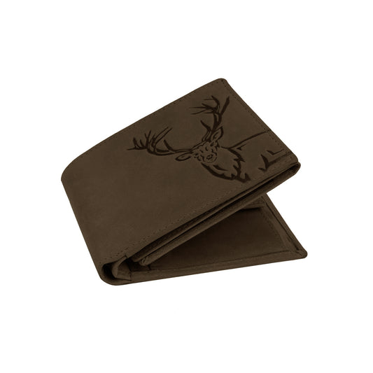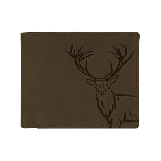 OMAX Brown Elk Embossed Design Genuine Leather Mens Wallet with Free Rakhi for Brother RBFW253