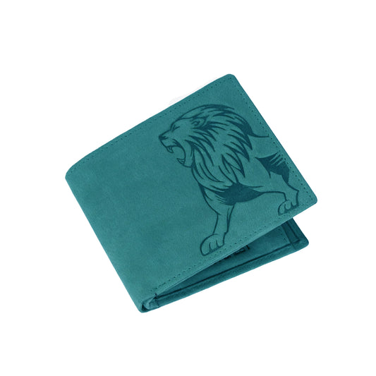 OMAX Aqua Blue Lion Embossed Design Genuine Leather Mens Wallet with Free Rakhi for Brother RBFW253